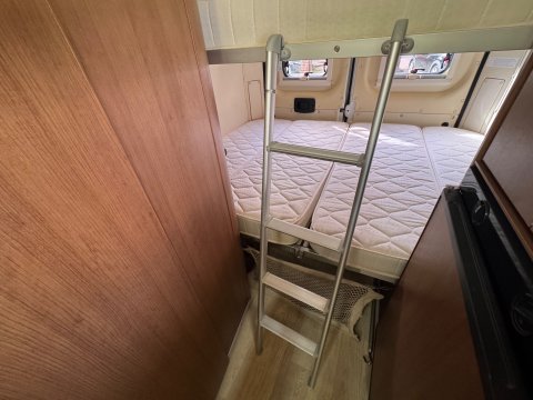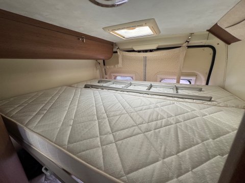 4 berth, 2 transverse double beds in the rear. Lower bed measures 6 ft by 4.6ft, upper bed measures 5.9 ft and 4.3 ft wide