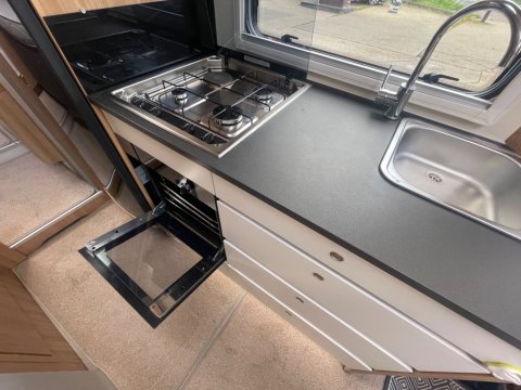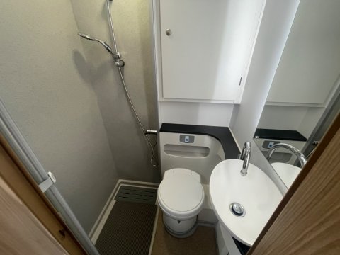 Really nice size shower room across the back. Comes with a separate shower room, shower head, wash basin with mixer tap and Thetford cassette toilet, wardrobe etc