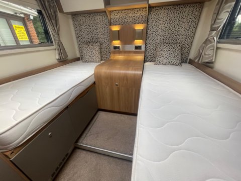 4 berth, 2 fixed single beds in the rear bedroom with another double which can made up in the lounge area.